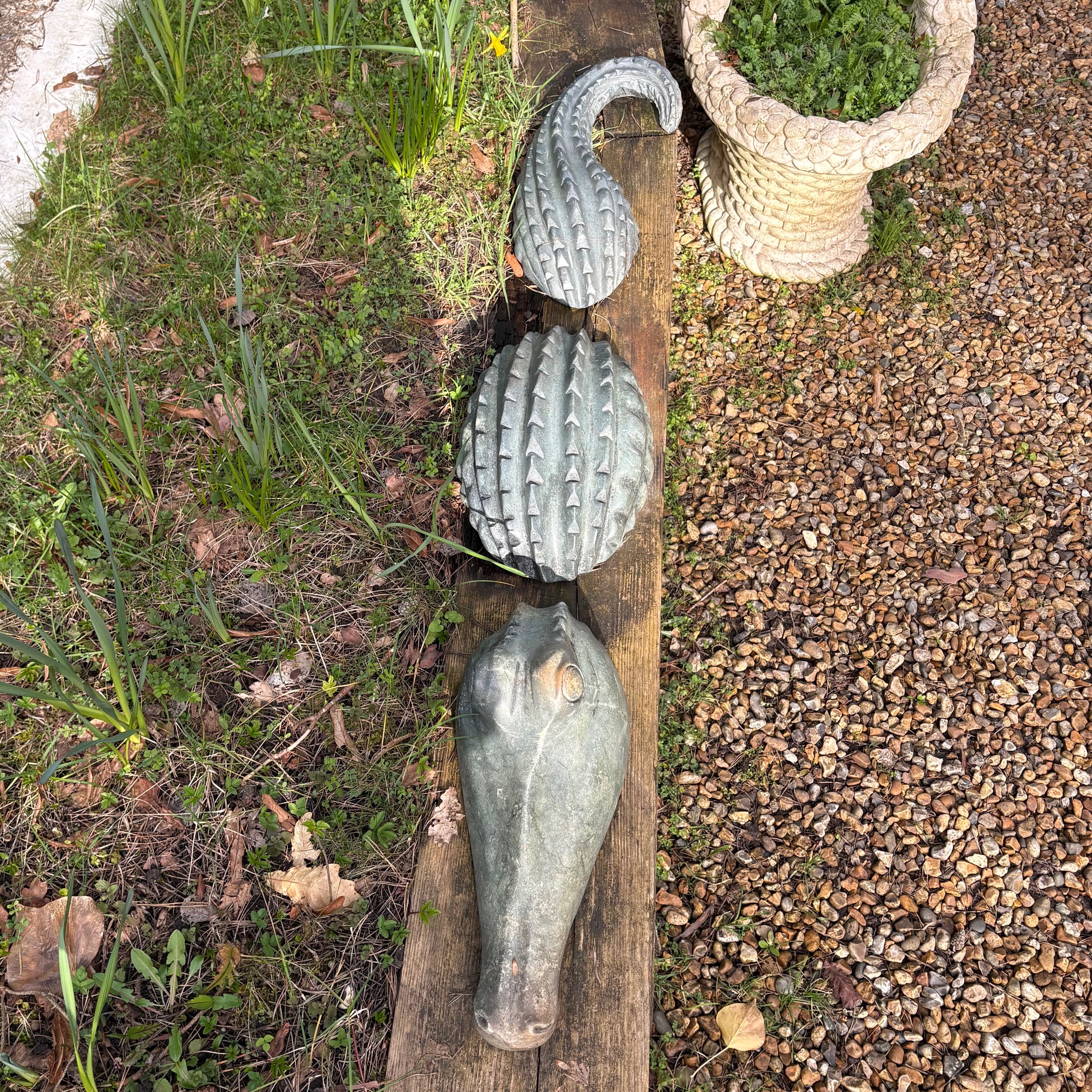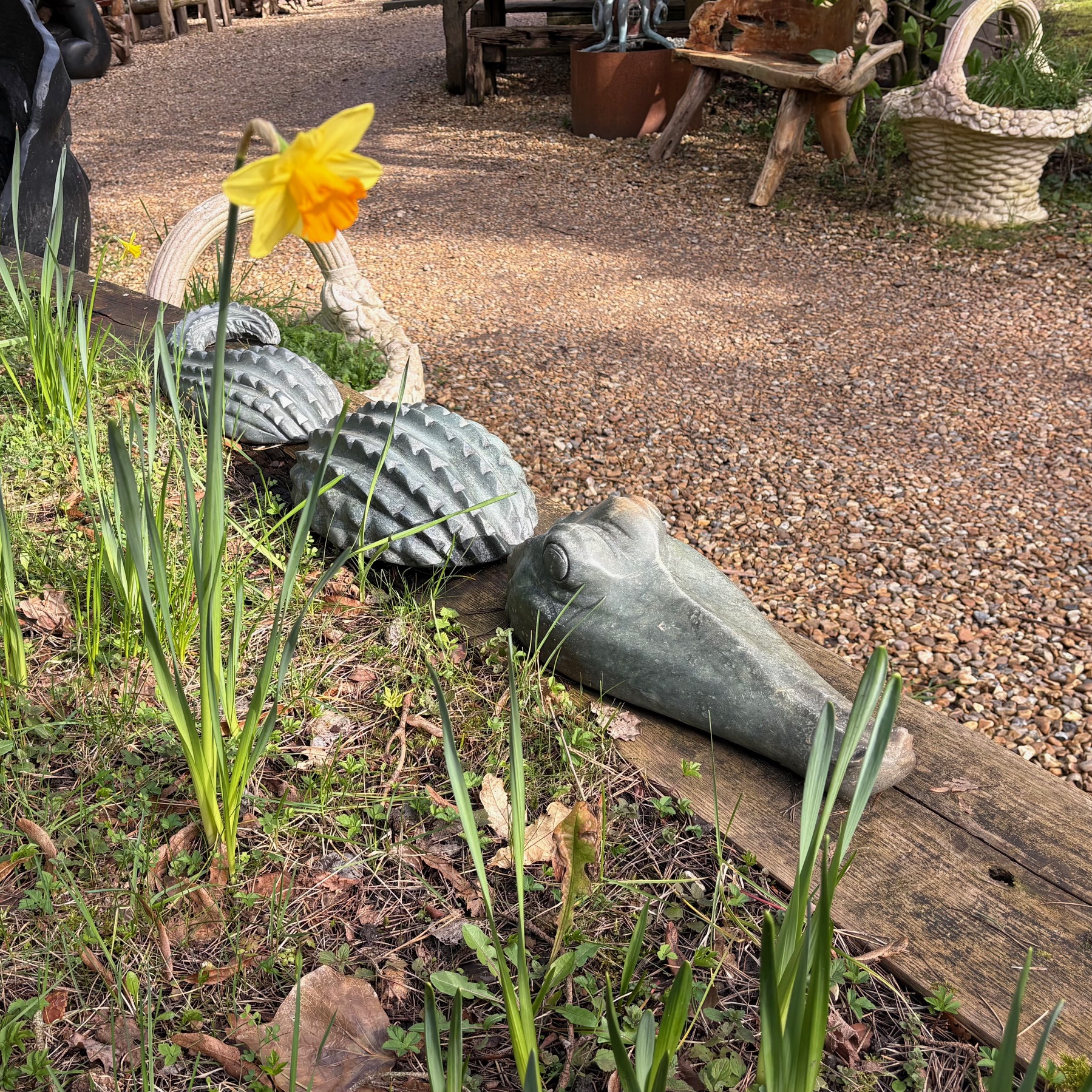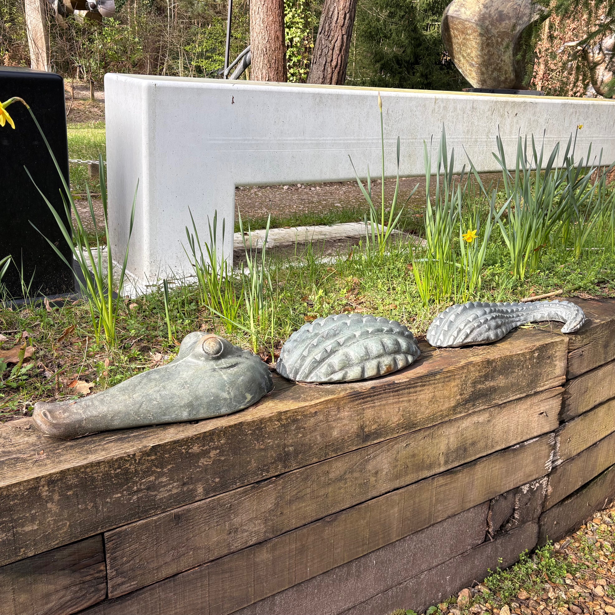 Rikodzi’s expert craftsmanship brings the creature vividly to life, with carefully sculpted contours suggesting movement just beneath the surface. The low, elongated profile enhances the sense of stealth and tension, as though the crocodile is poised to rise further at any moment. Subtle textural detailing along the body creates depth and visual intrigue.