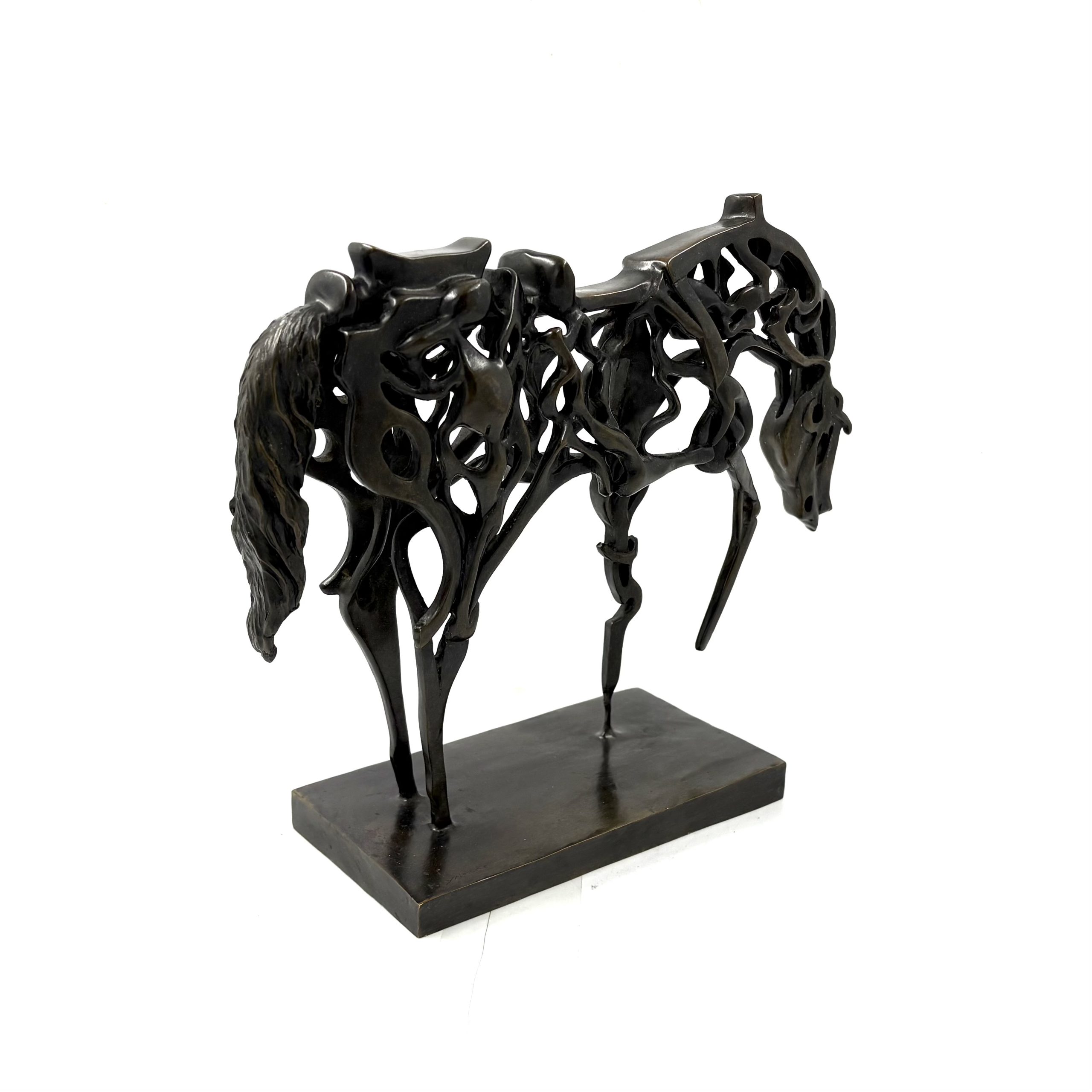 Table-top surrealist horse sculpture inspired by the dreamlike, fluid aesthetic of Salvador Dalí. This striking piece captures the essence of surrealism with elongated, distorted forms and imaginative detailing that evoke a sense of movement and fantasy. Crafted as a decorative art object, it features a unique interpretation of the horse figure, blending elegance with the unexpected, much like Dalí’s iconic visual language.