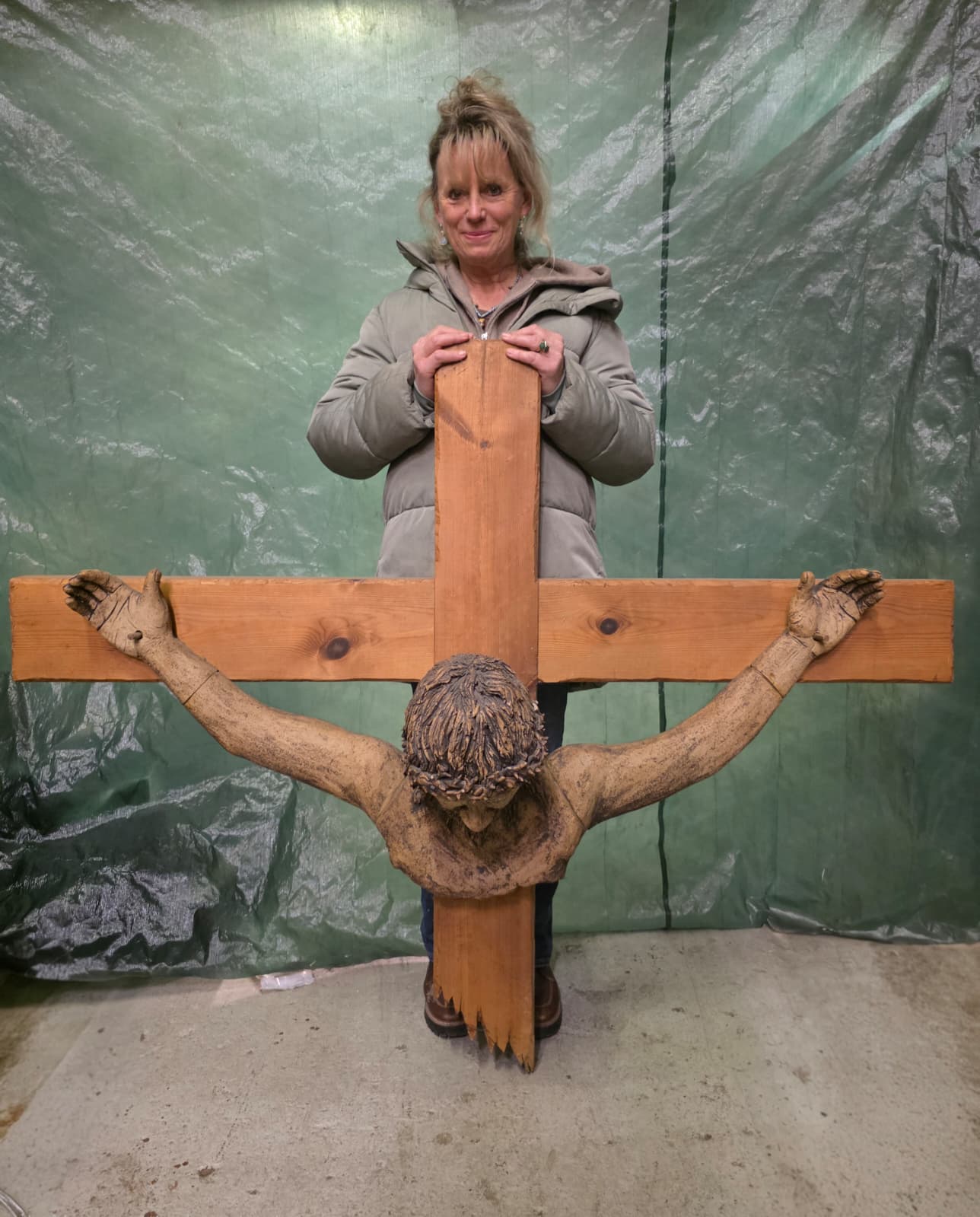 Originally created as the 15th panel of the ‘Stations of the Cross’ commission for St. Thomas’s Church, Greetland, Yorkshire, this sculpture carries both historical and spiritual significance. It served in a neighbouring church until its closure, giving it authentic provenance and depth of meaning.
