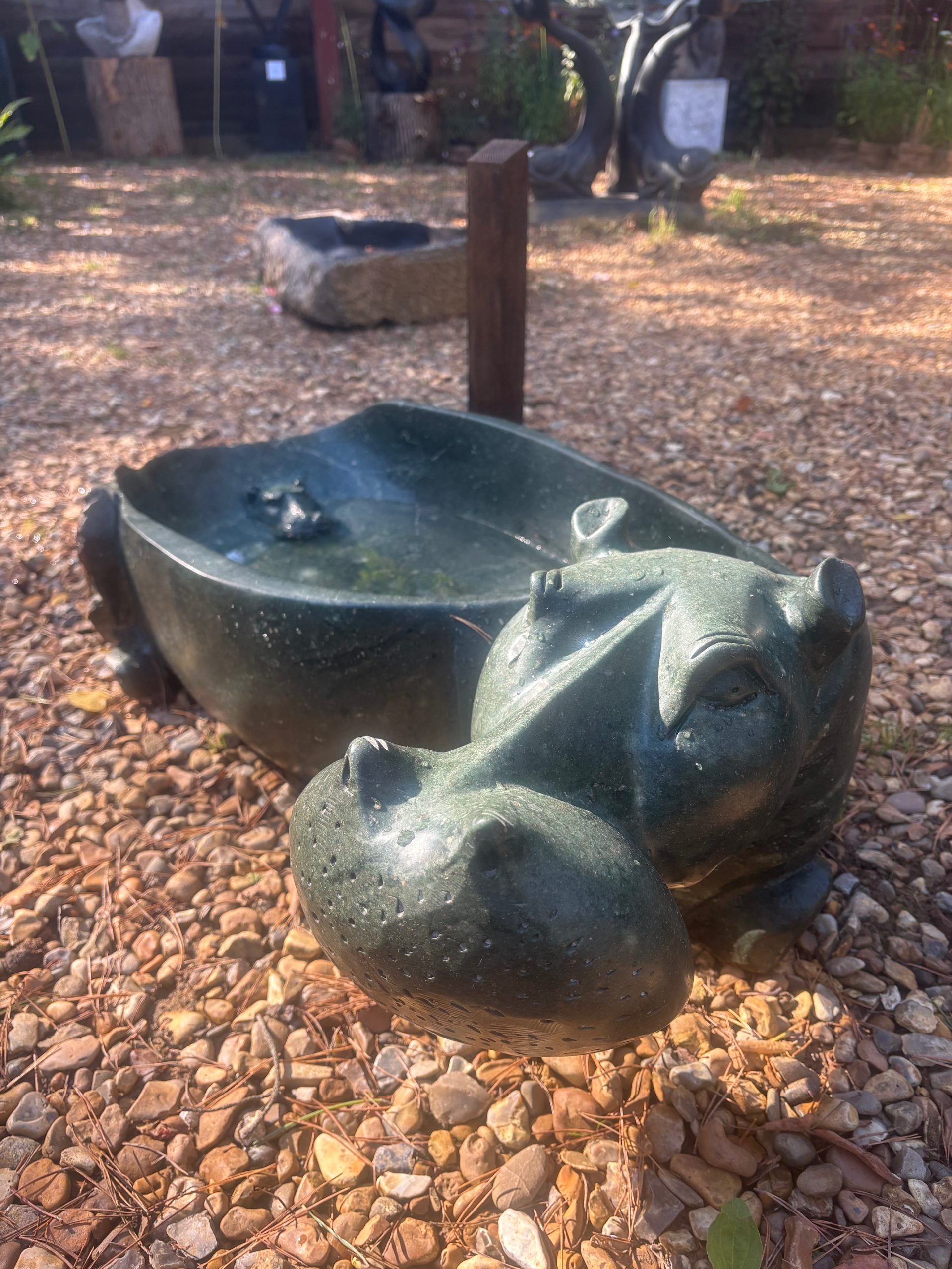 Hippo Bird Bath by Timothy Rukodzi, Opal Stone, Unique, 27cm high, 90cm wide, 42cm deep, Animal, Africa, Hippopotomus, Basin, Sculpture