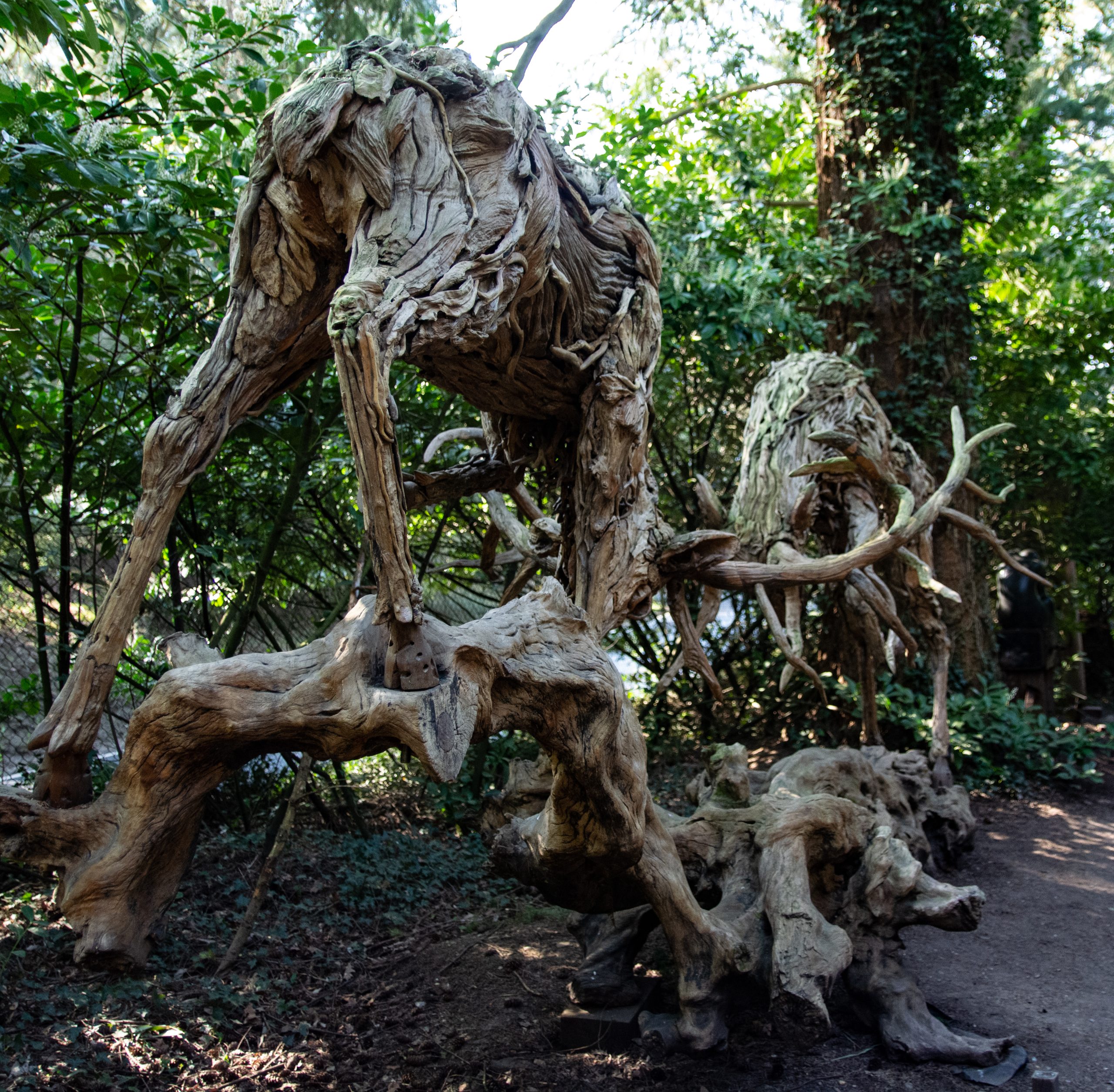 Doran-Webb’s artistic process involves sourcing driftwood from various locations, mostly from beaches and river banks in the Philippines. He meticulously selects pieces that fit together to form realistic representations of animals. All the driftwood is dense enough to withstand years of exposure to extreme weathers. Therefore creating the unusual and individual shapes we see in his sculptures. The beauty of the reclaimed materials is highlight by James work.