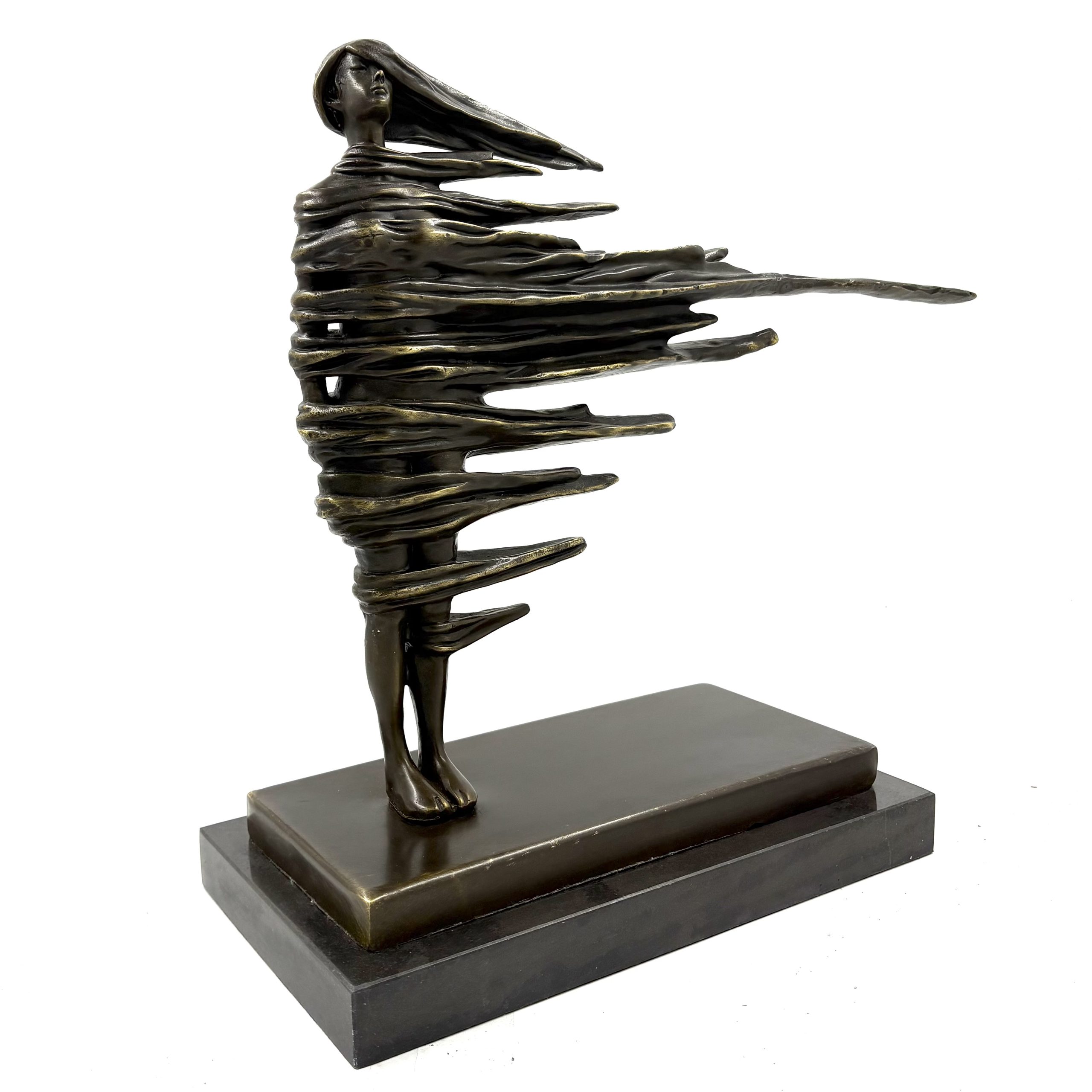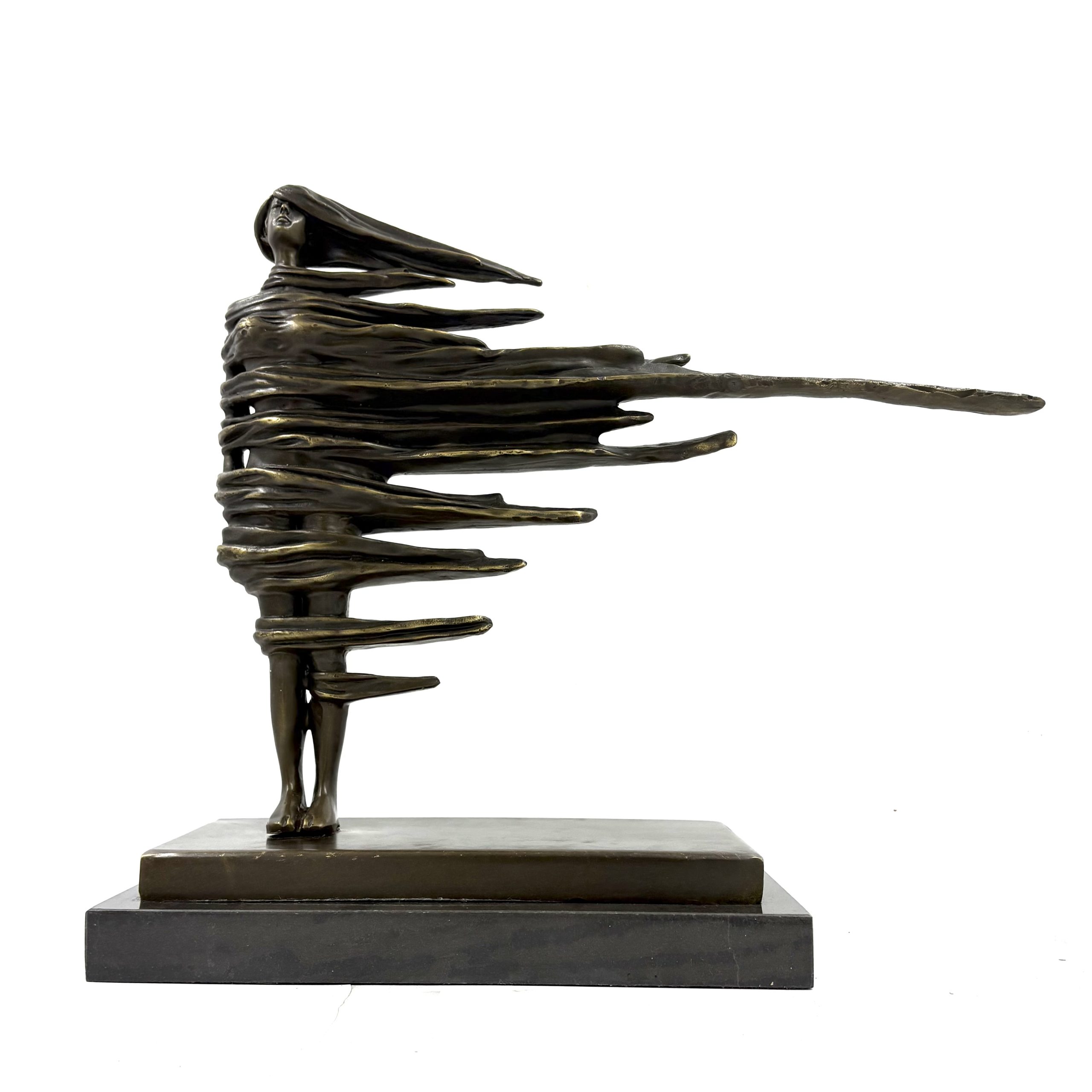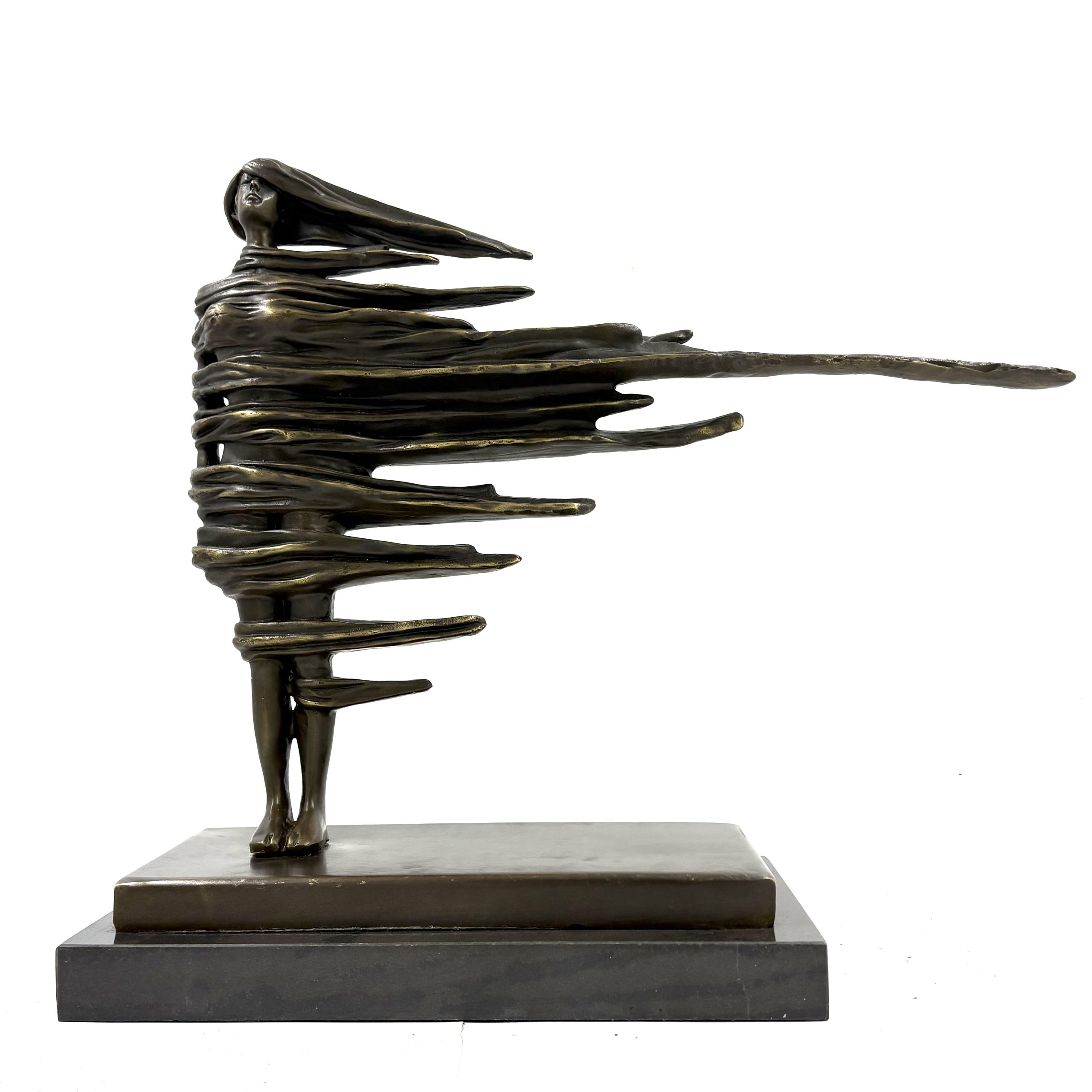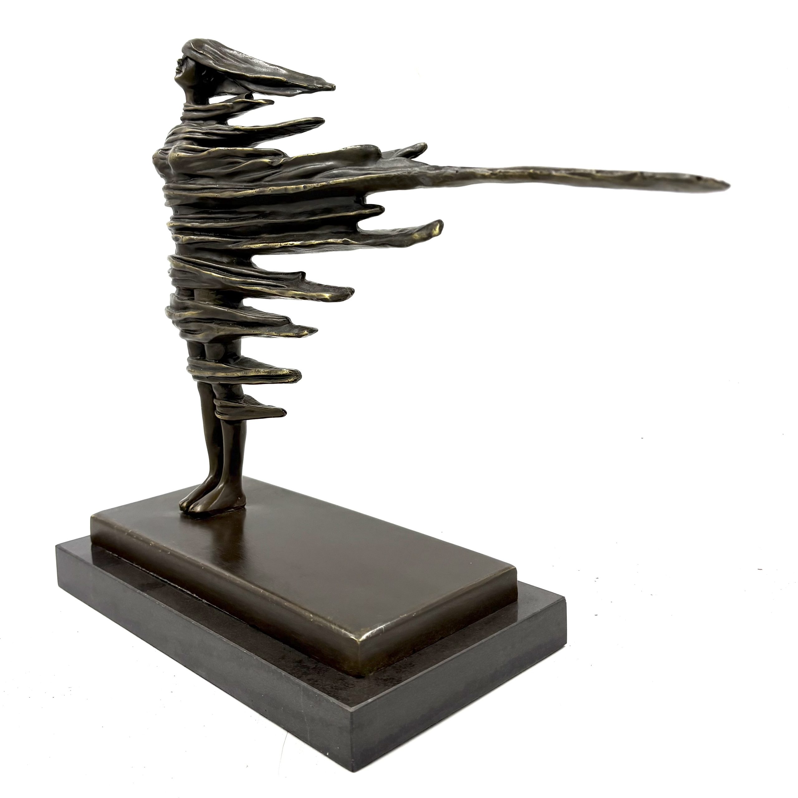 This piece, Surrealist Dancer by In the Style of Salvador Dali, was inspired by the imaginative world of Salvador Dalí. It captures movement, elegance, and dreamlike abstraction in a beautifully crafted form. Cast in bronze, the piece depicts a graceful female figure, which flows and melts away, evoking a sense of otherworldly dance. Her long, flowing hair appears to be captured during movement or as if in the wind. This further enhances the sculpture’s dynamic and ethereal quality.